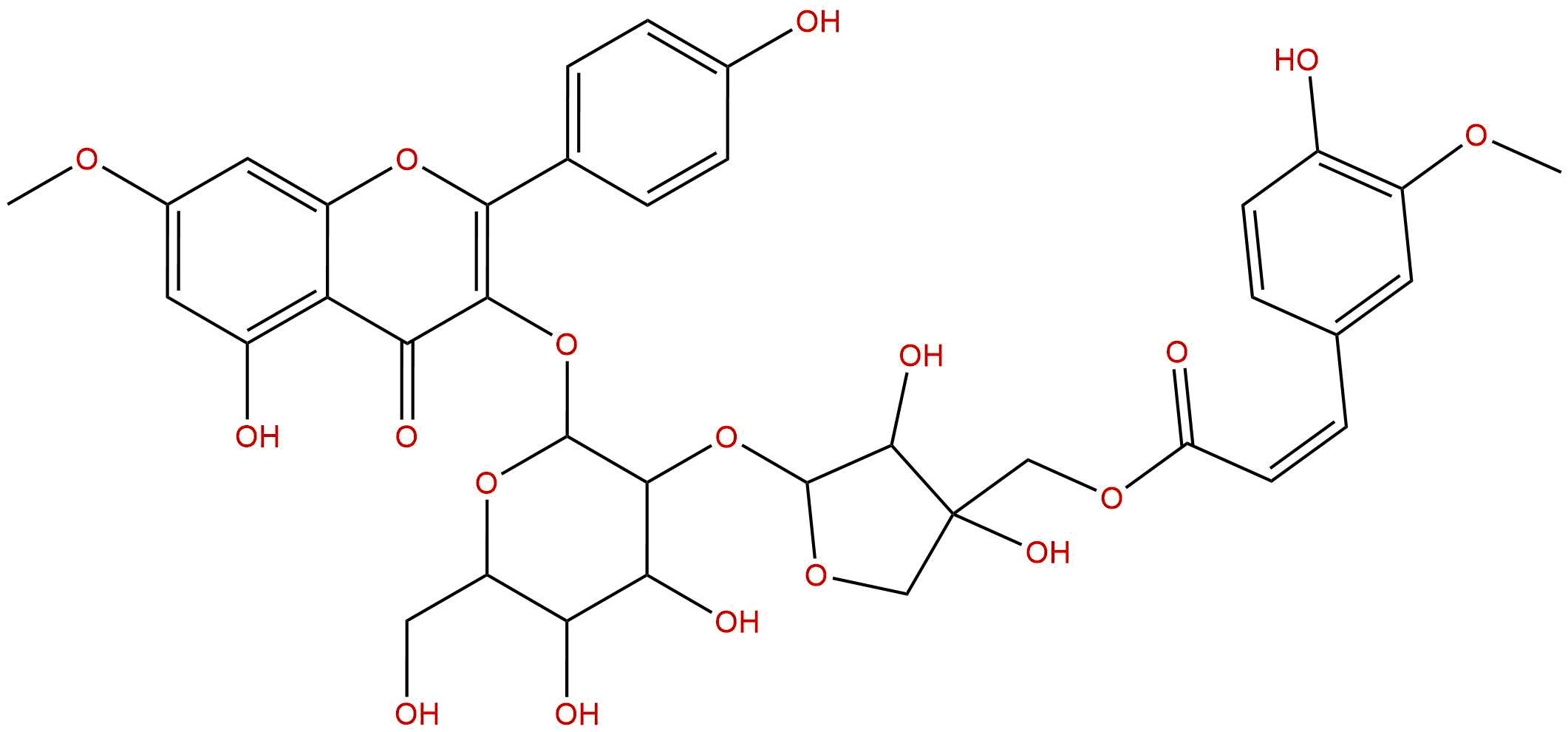 英文名称: 3-O-[5'''-O-feruloyl-β-D-apiofuranosyl(1'''->2''')-β-D-glucopyranosyl] rhamnocitrin